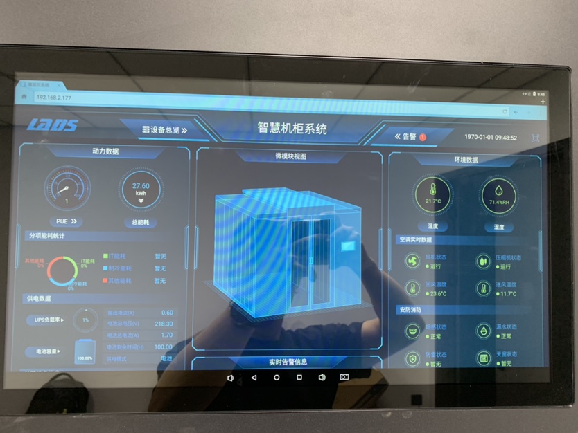 1臺服務器式配電柜,11臺服務器機柜,2臺房間級40KW雙系統上送風恒溫恒濕機組,1套動環監控系統,該方案有快速部署、高效節能、空間緊湊、靈活擴展等特點,有效滿足客戶在云時代對數據中心高效可靠、快速靈活和智能管理的需求。