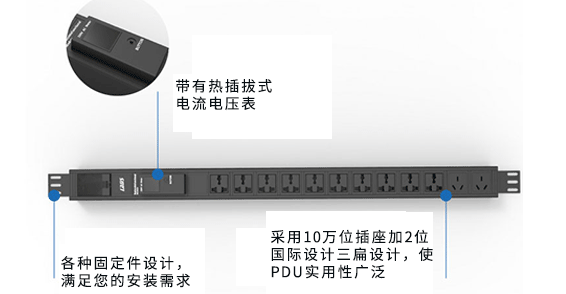 雷迪司12位帶熱插拔電流電壓表PDU